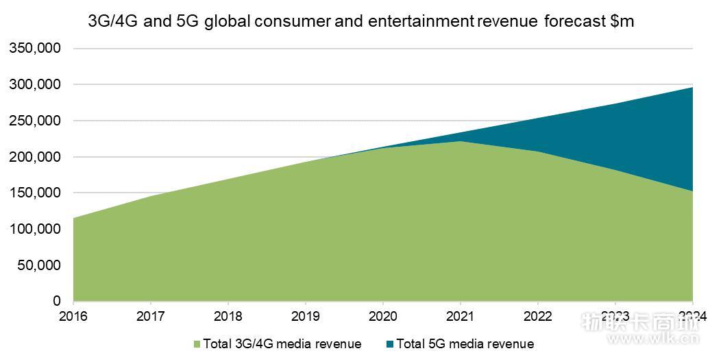 Ovum媒體與娛樂首席分析師Ed Barton表示,5G商用發布的速度,支撐了Ovum最初對5G消費和娛樂服務收入規模進行調整和預測的嘗試。Ovum對2020年代初的預測,在很大程度上要歸因于從較老的網絡中轉移的消費和娛樂支出:FWA(固定無線接入)、視頻、音樂和游戲交易以及廣告收入,以及那些Ovum認為5G將帶來改進的用例。Ovum預期將在2020年代早期至中期看到5G廣泛支持的用例(即,那些在舊網絡上可能無法實現的用例,或者是在舊網絡上有可能實現,但是體驗質量下降的用例),圖1包含了直到2024年期間由AR、VR和云游戲產生的收入。