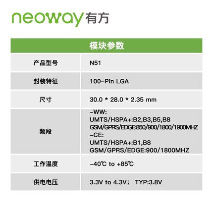 Neoway 有方科技 N51 UMTS/GSM/WCDMA 3G 無線通信模塊 模組